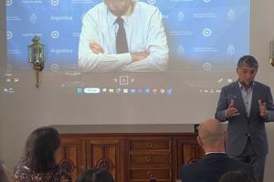 El Embajador Martínez Pandiani dio la bienvenida y destacó la alta calidad de la formación educativa existente en nuestro país que se refleja en el desarrollo profesional de los científicos argentinos presentes en Suiza.